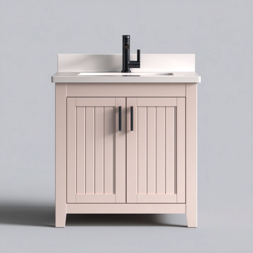 Meuble de Salle de Bain à 2 Portes en Bois de Bouleau avec Vasque Intégrée en Céramique - Rose Pâle