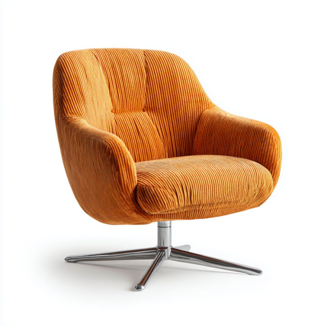 Fauteuil Pivotant en Tissu de Polyester à Texture Côtelée et Pied en Acier Chromé - Orange